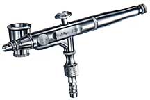 Based on the Phoenix series. Removable cup for quick color changes and is convertible for either right or left handed individuals. Internal mix. Double action lever control lets you vary spray pattern width without stopping. Used for photo-retouching, techical illustration, medical illustration, etc., which require the most delicate perfection.
